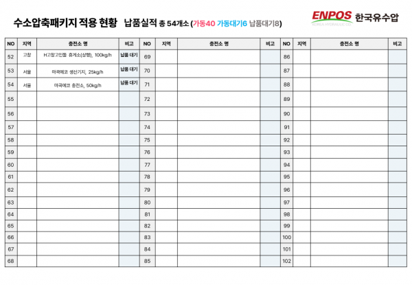 수소압축패키지 국내 적용 현황 (2025년 5월 기준) 페이지 정보 글쓴이 ENPOS 작성일21-08-20 11:34 조회4,291 댓글0 관련링크 https://blog.naver.com/enpos_korea/223326103819 792회 연결 Prev Next 목록 본문 2025년 5월 기준 당사 수소압축패키지 국내 적용 현황 입니다. 참고바랍니다. *클릭 시 이미지가 확대됩니다. Prev Next 목록